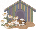 Voir le motif de grille de point de croix en taille réelle: chien,fleur,